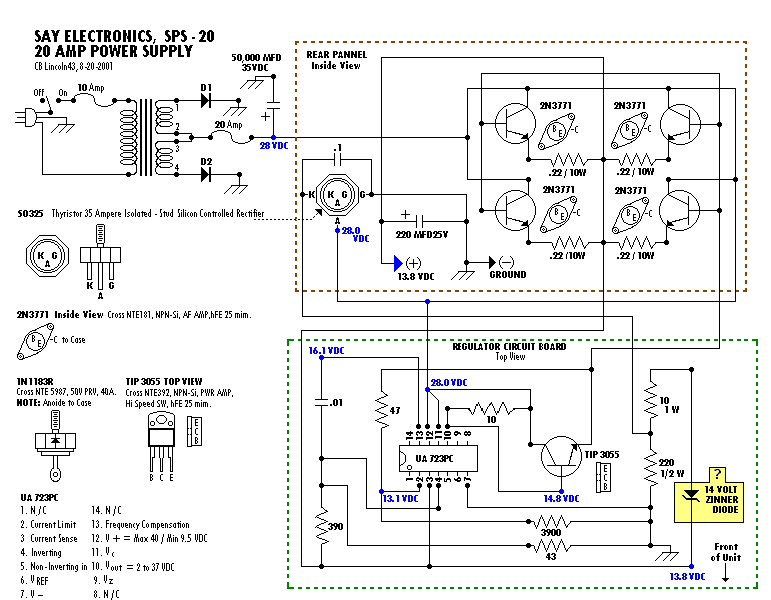 | SAY Electronics SPS-20 20amp Power supply Schematic | |