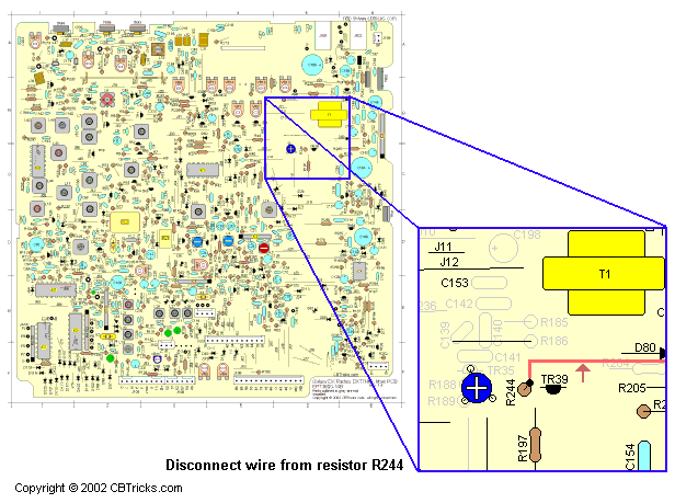 Talkback can become distorted if these radios have been "peaked," and there is no cure because the talkback just amplifies what goes to the RF section. Try adding a 470k ohm resistor from junction of C154/R207 to the junction of C187/R235 on the solder side of the board. This will also give you clean talkback on SSB and FM. Try different values of resistance to get the amount of volume you want. The less the resistance the louder the talkback will be.